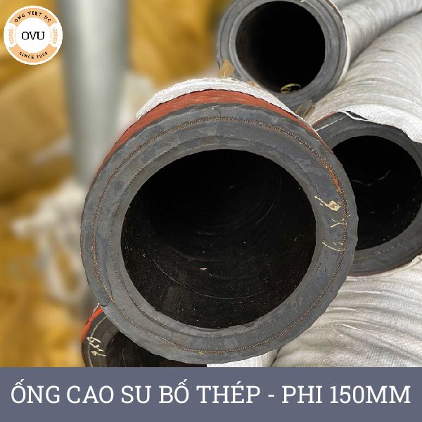 Ống cao su bố thép phi 150mm được cấu tạo từ nhiều lớp cao su và lớp bố thép gia cường, giúp tăng cường độ bền và khả năng chịu lực. Lớp ngoài cùng của ống được làm từ cao su chịu lực, chống mài mòn và chịu được tác động của môi trường khắc nghiệt. Lớp trong cùng là cao su chịu dầu và chịu hóa chất, đảm bảo không bị ảnh hưởng bởi các chất lỏng công nghiệp.